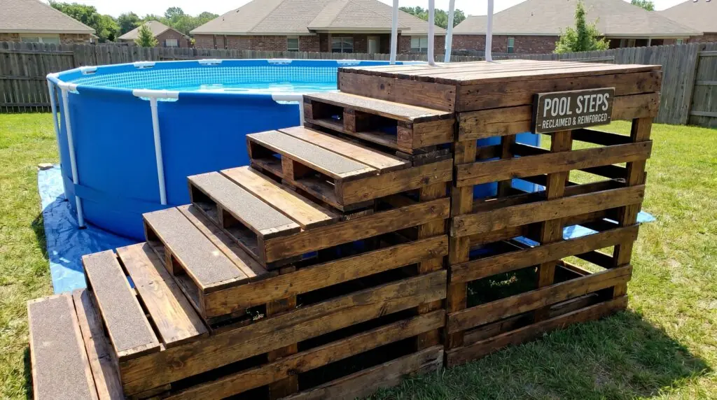 You can build sturdy, low-cost steps from reclaimed pallets to improve access to your above-ground pool. Use pressure-treated or well-sealed boards, reinforce joints with screws and blocking, and add a non-slip finish for safety.