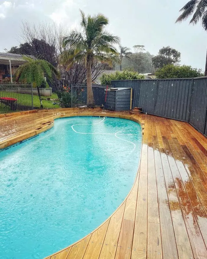 Start with a simple platform design that matches your pool’s shape and height to reduce framing complexity.